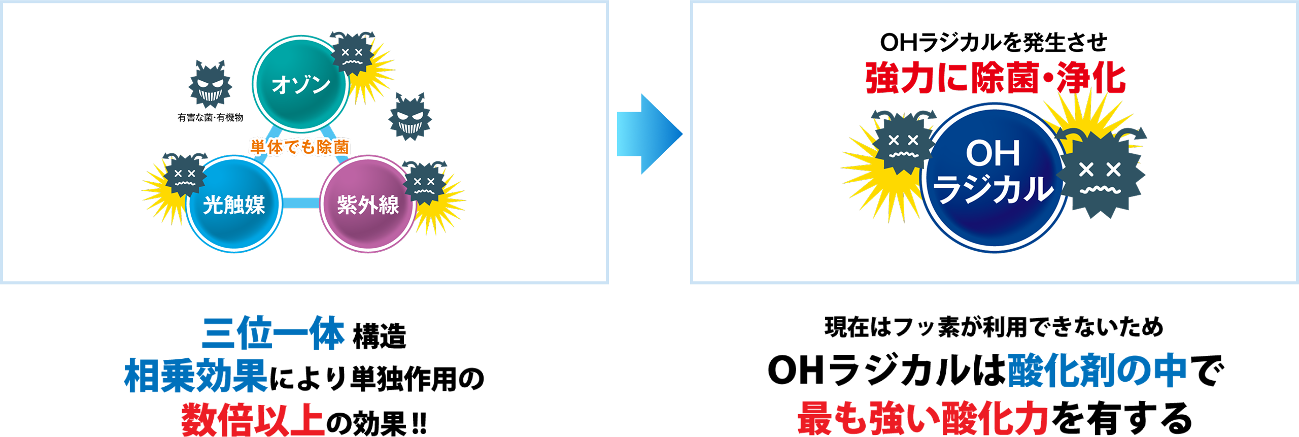 - 地球環境を守り、薬品を使わない除菌、浄化、消臭装置
