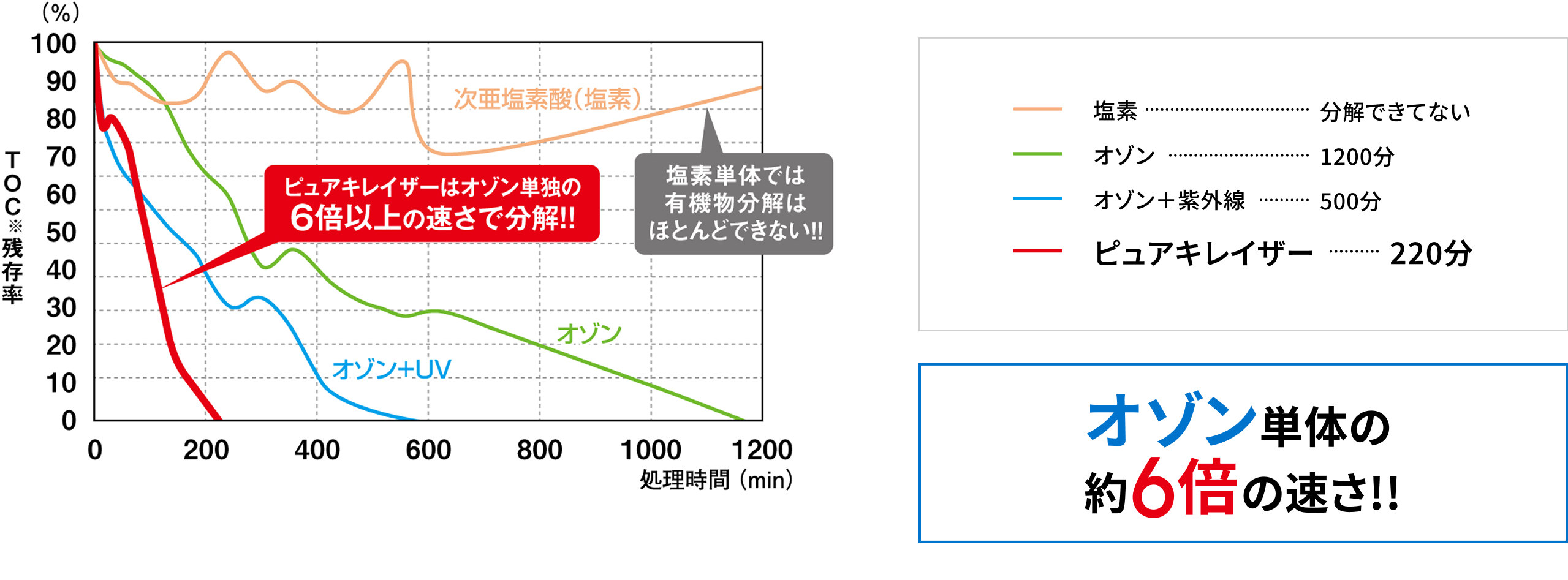 - 大腸菌、レジオネラ属菌などを強力に分解・除菌