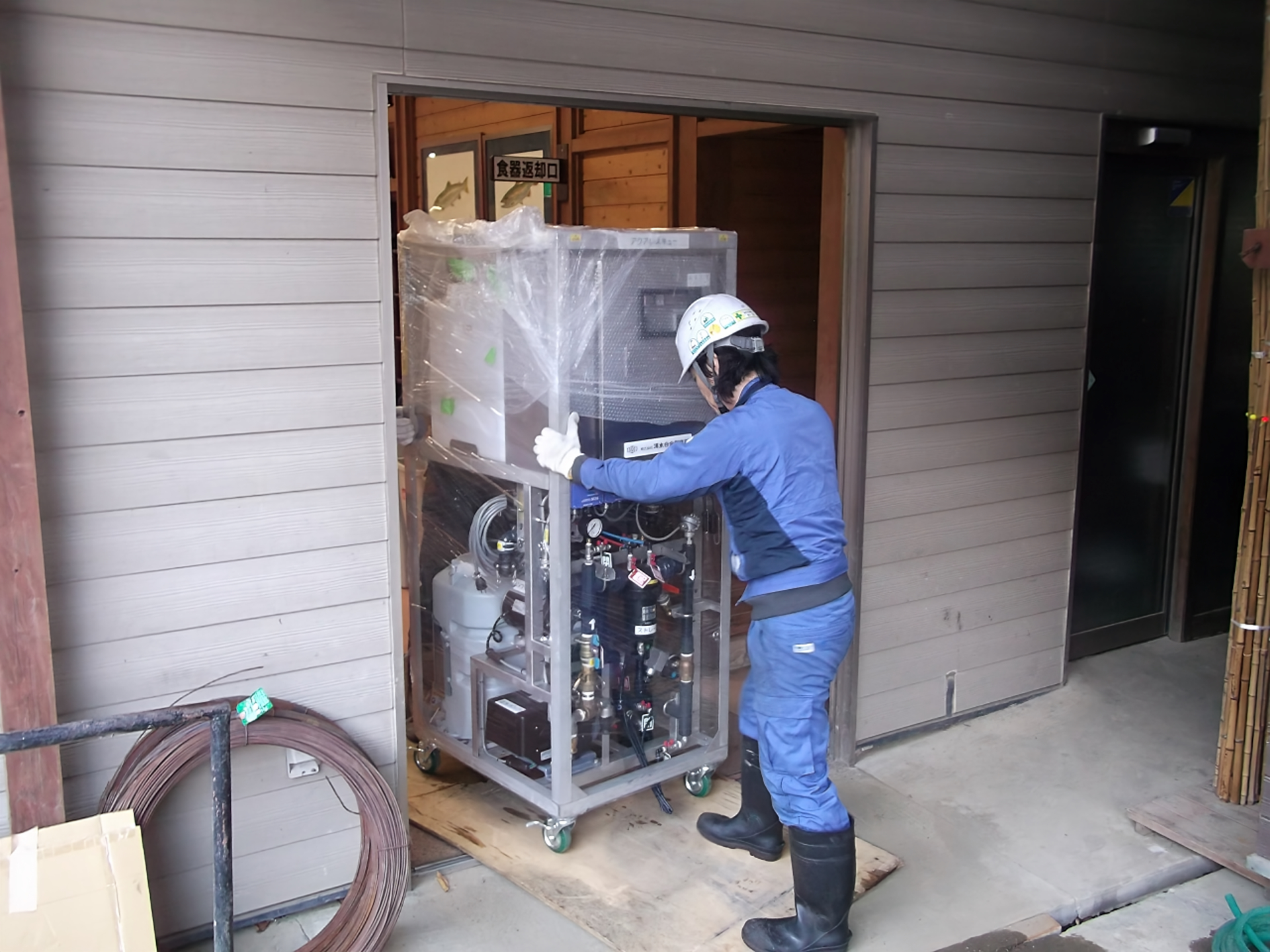 「アクアレスキュー」は、浄水場原水、防火水槽、井戸、プール、自然水など多様な水源から取水し、水道水の水質基準を満たす水をつくる装置です。狭小スペースや搬入経路が限られる施設でもスムーズに設置できるよう、装置を分割して搬入し、現地で組み立てる設計を採用しています。これにより、山間部や離島など搬入が困難な地域にも対応し、配管工事の工数が削減され短時間での給水を実現します。2006年の発売以来、小規模地域社会の水供給インフラや災害時の緊急対応など、全国の地方自治体に多数導入されてきました。